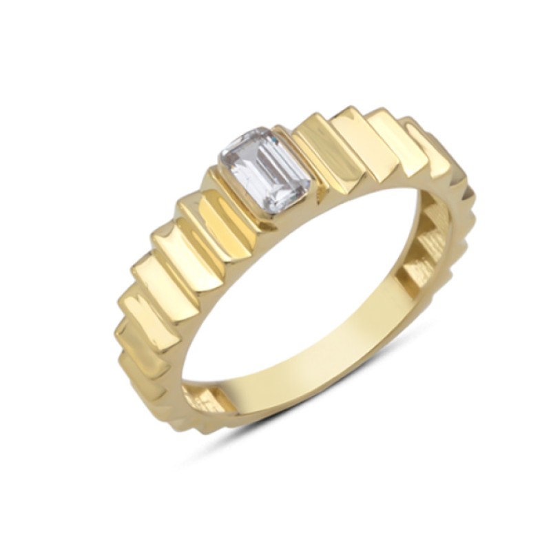 14 Ayar Altın Tek Baget Taşlı Yüzük YZK357