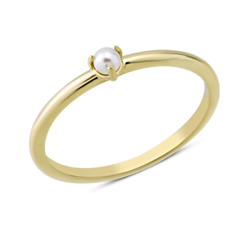 14 Ayar Altın Tek İncili Yüzük YZK370
