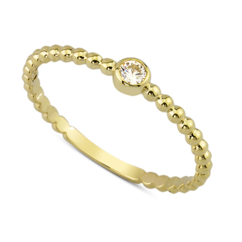 14 Ayar Altın Top Kollu Tektaş Yüzük YZK046