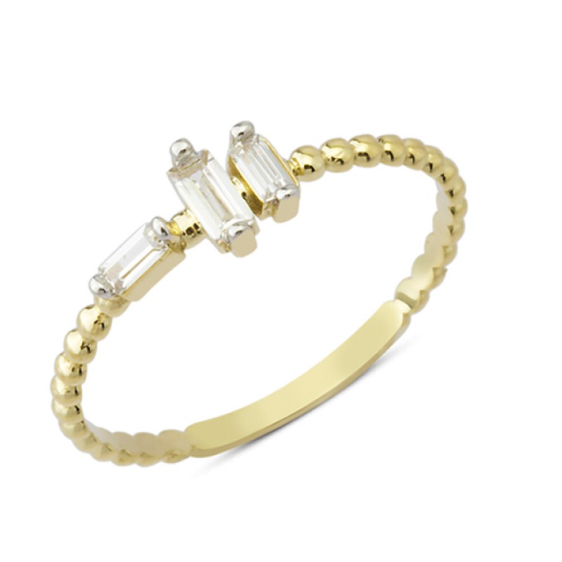 14 Ayar Altın Üç Baget Taşlı Yüzük YZK044