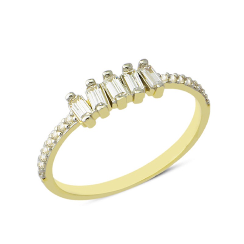14 Ayar Altın Yan Taşlı Baget Yüzük YZK051