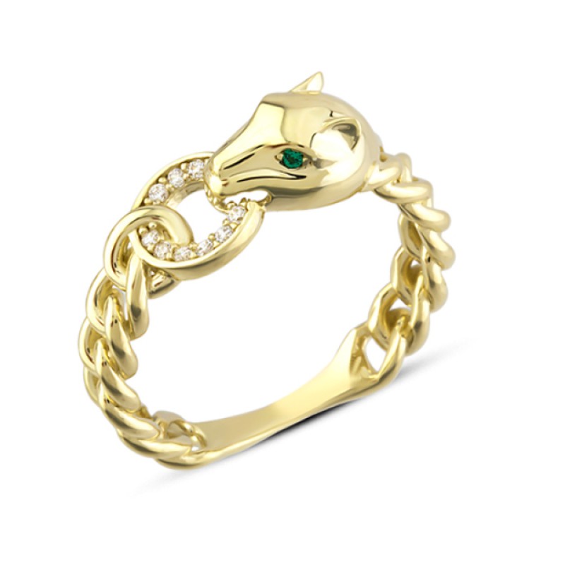 14 Ayar Altın Yeşil Gözlü Kaplan Yüzük YZK321