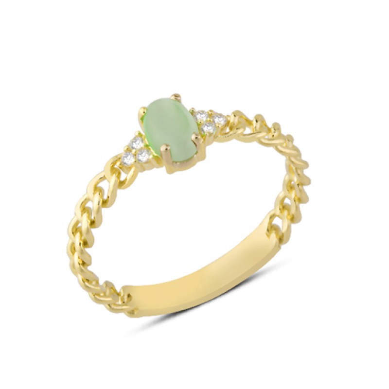 14 Ayar Altın Yeşil Taşlı Zincir Kollu Yüzük YZK125A