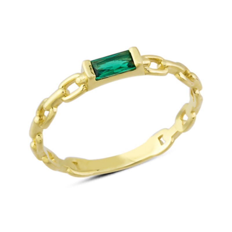 14 Ayar Altın Yeşil Taşlı Zincirli Yüzük YZK177
