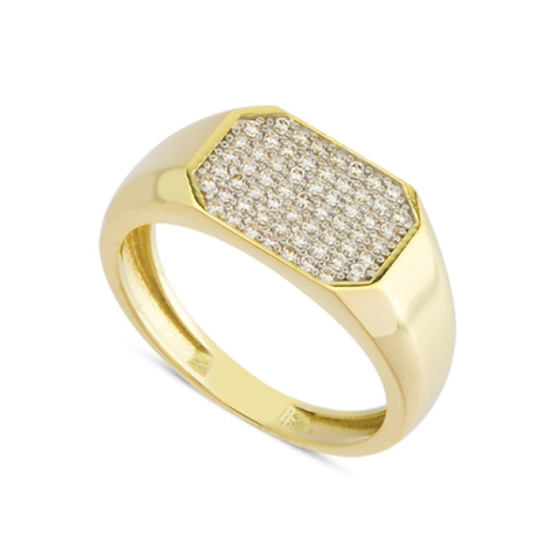 14 Ayar Altın Beyaz Pave Taşlı Sekizgen Yüzük YZK073A