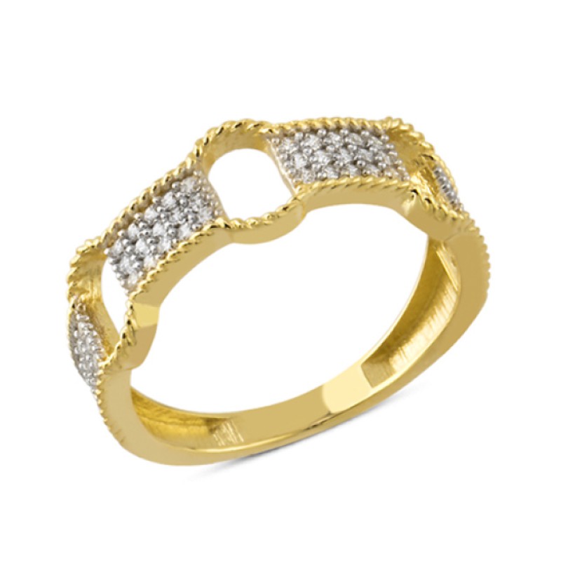 14 Ayar Altın Beyaz Taşlı Boşluklu Yüzük YZK104A