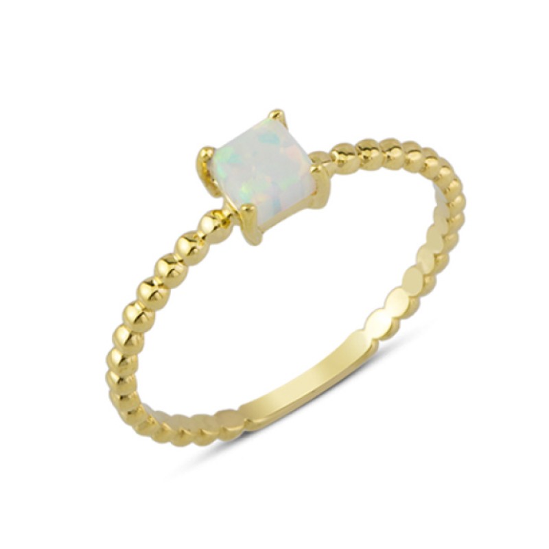 14 Ayar Altın Beyaz Taşlı Minimal Kare Yüzük YZK001
