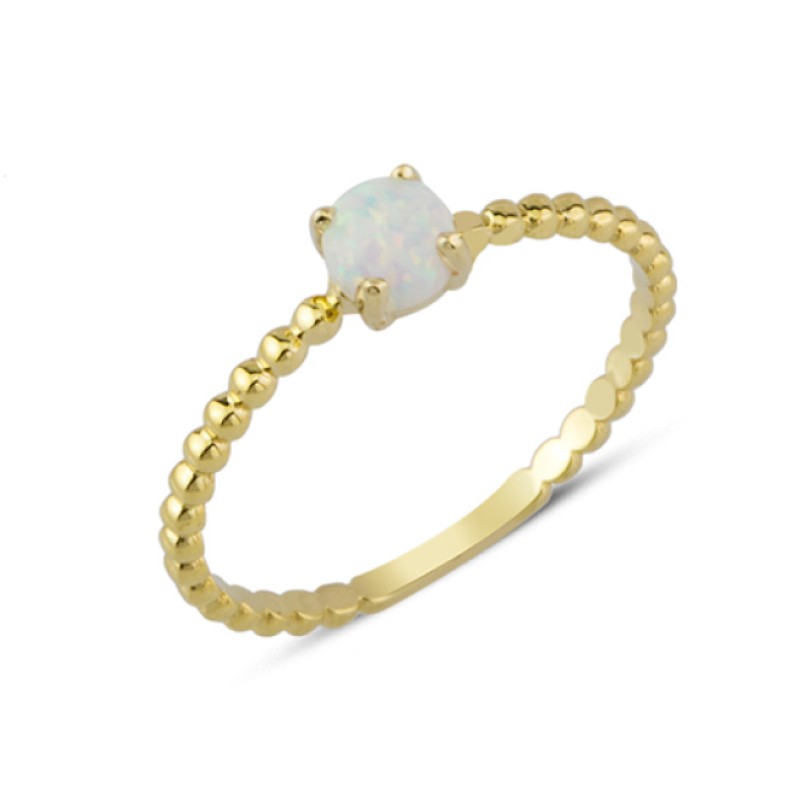 14 Ayar Altın Beyaz Yuvarlak Taşlı Minimal Yüzük YZK002