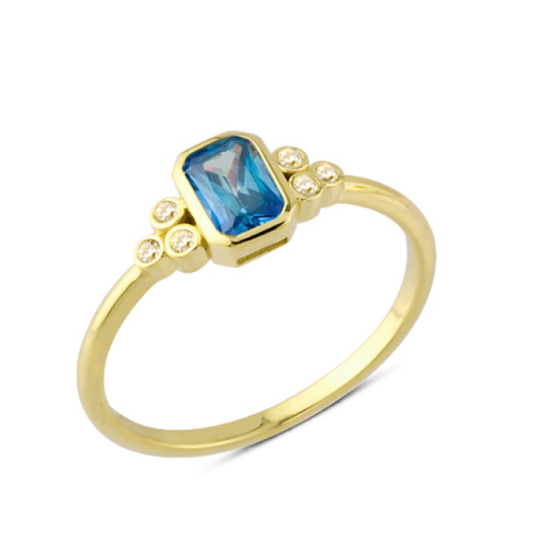 14 Ayar Altın Mavi Baget Yüzük YZK145