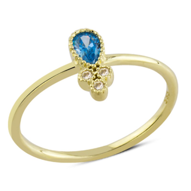 14 Ayar Altın Mavi Damla Taşlı Yüzük YZK097A