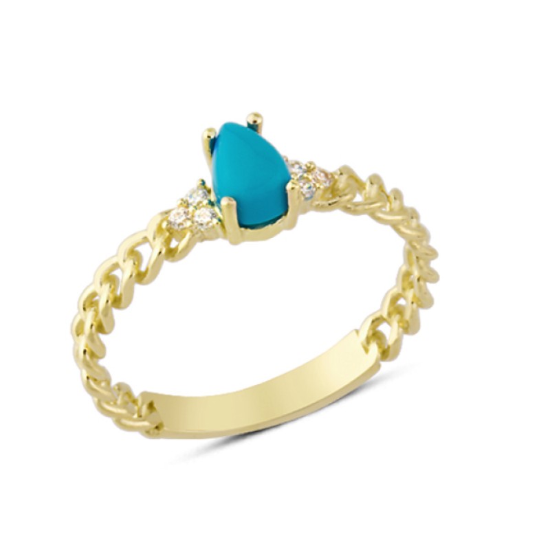 14 Ayar Altın Mavi Damla Taşlı Yüzük YZK143A