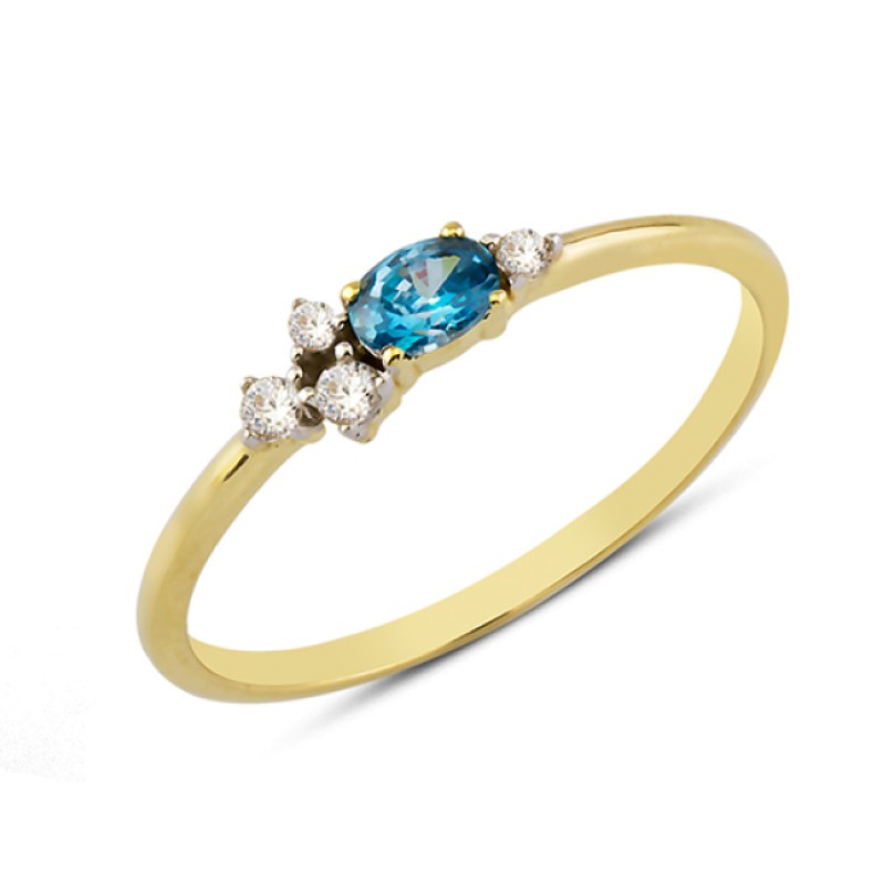 14 Ayar Altın Mavi Oval Taşlı Yüzük YZK009B