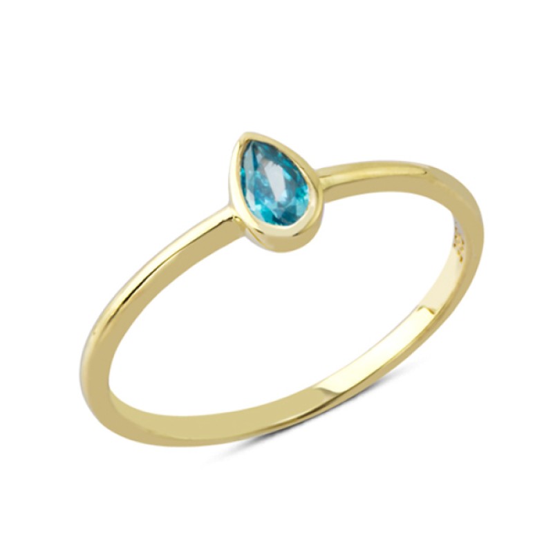 14 Ayar Altın Mavi Sıvamalı Damla Taşlı Yüzük YZK117B