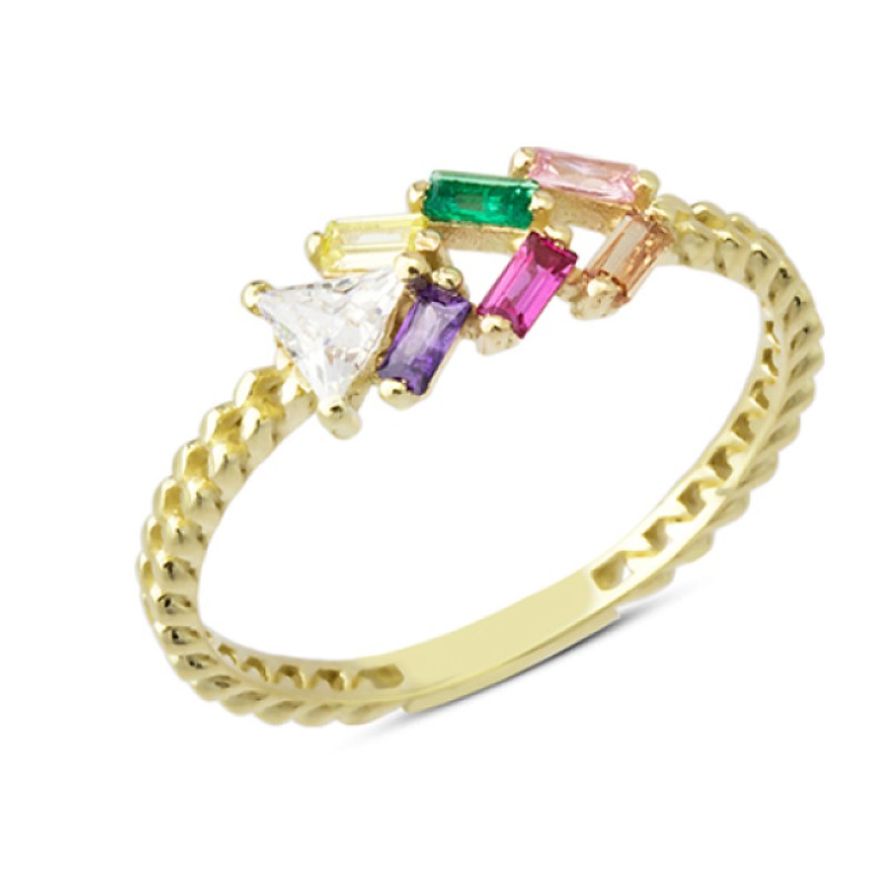14 Ayar Altın Mini Renkli Baget Taşlı Yüzük YZK028C