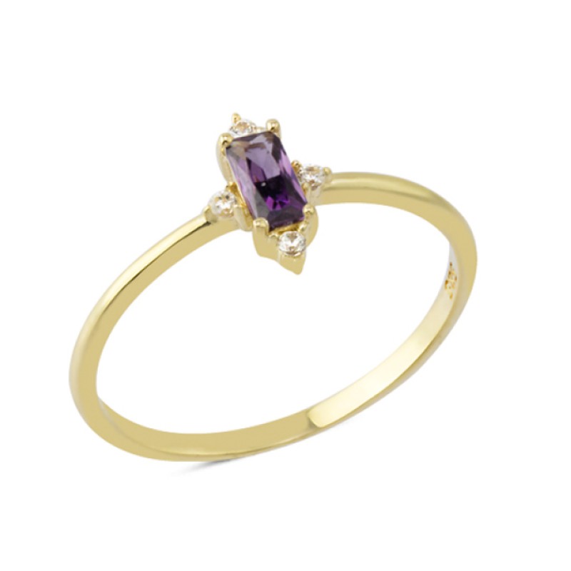 14 Ayar Altın Mor Taşlı Kraliçe Yüzük YZK121A