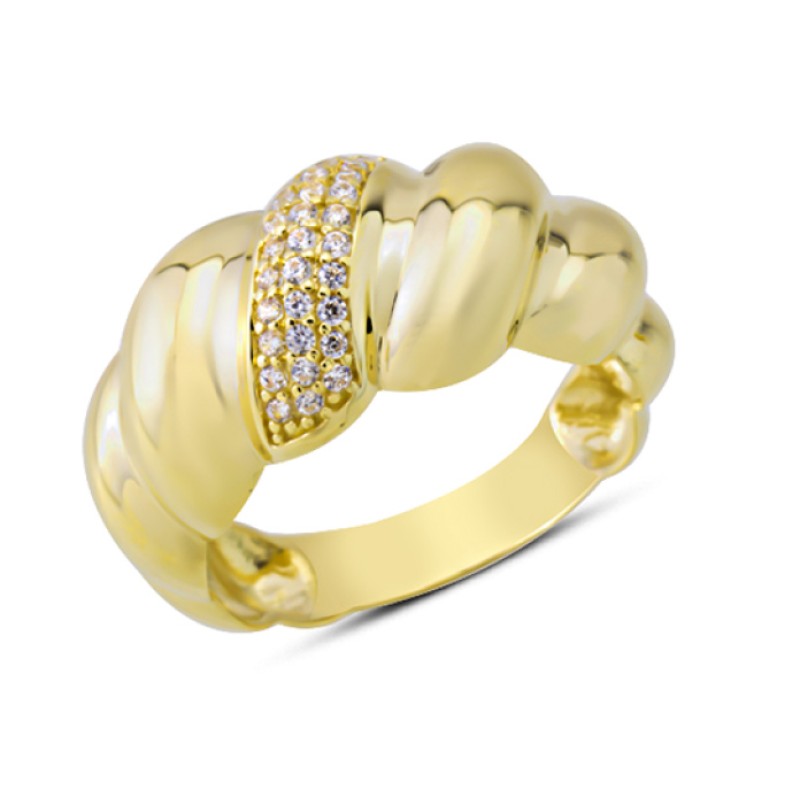 14 Ayar Altın Orta Taşlı Sarmal Yüzük YZK365