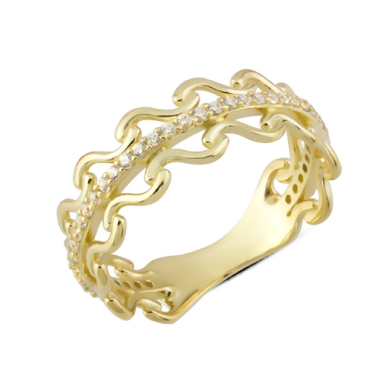 14 Ayar Altın Ortası Taşlı Dalga Yüzük YZK284