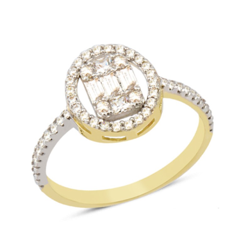14 Ayar Altın Oval Baget Yüzük YZK049