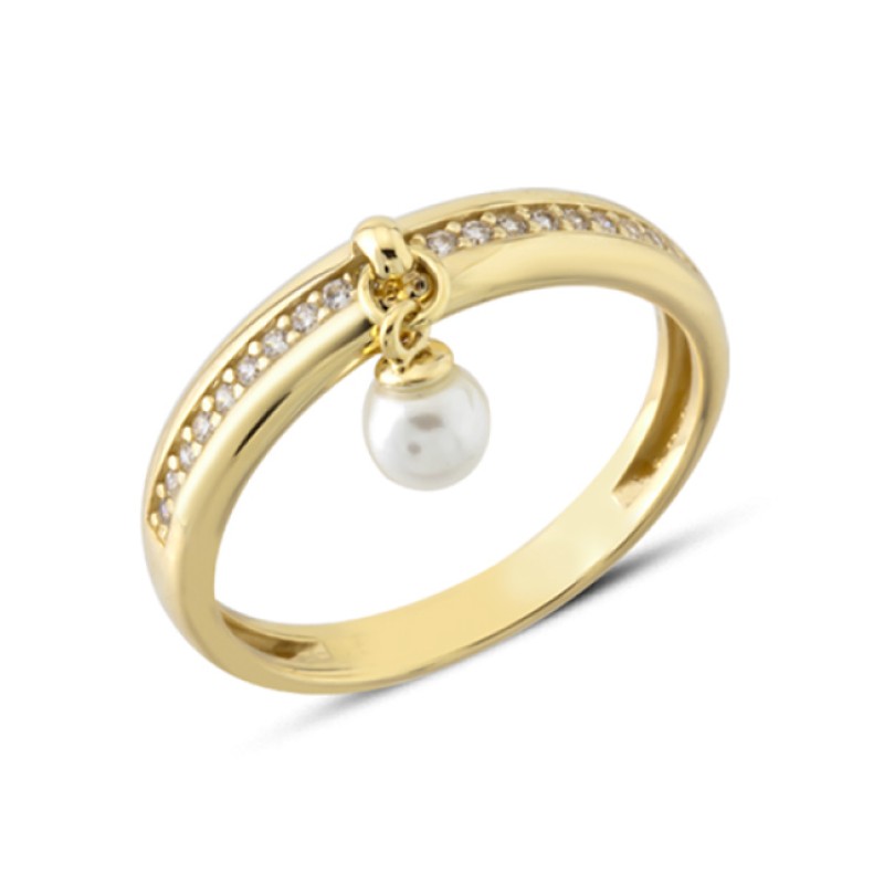 14 Ayar Altın Sallantılı İncili Yüzük YZK398B