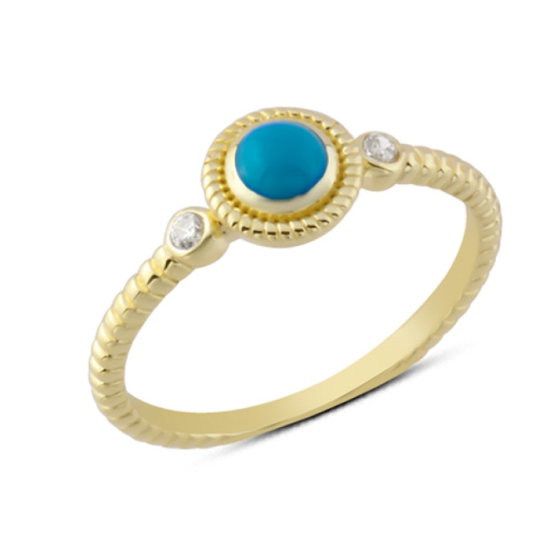 14 Ayar Altın Sıvamalı Mavi Taşlı Yüzük YZK273