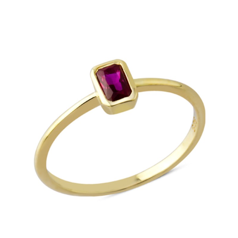 14 Ayar Altın Sıvamalı Mor Taşlı Yüzük YZK115B