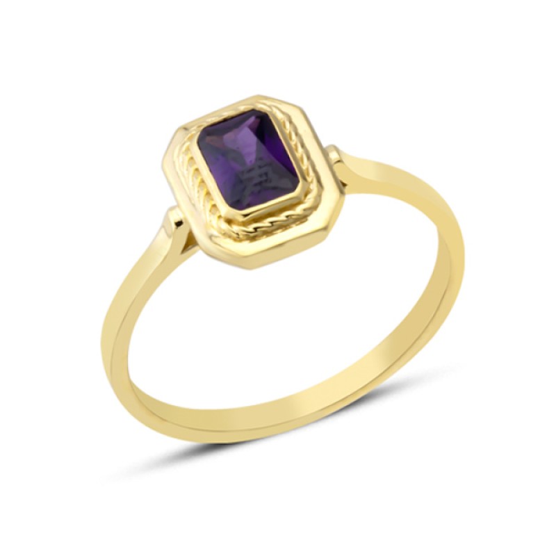14 Ayar Altın Sıvamalı Mor Taşlı Yüzük YZK379