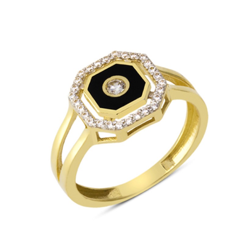 14 Ayar Altın Siyah Mineli Yüzük YZK074A