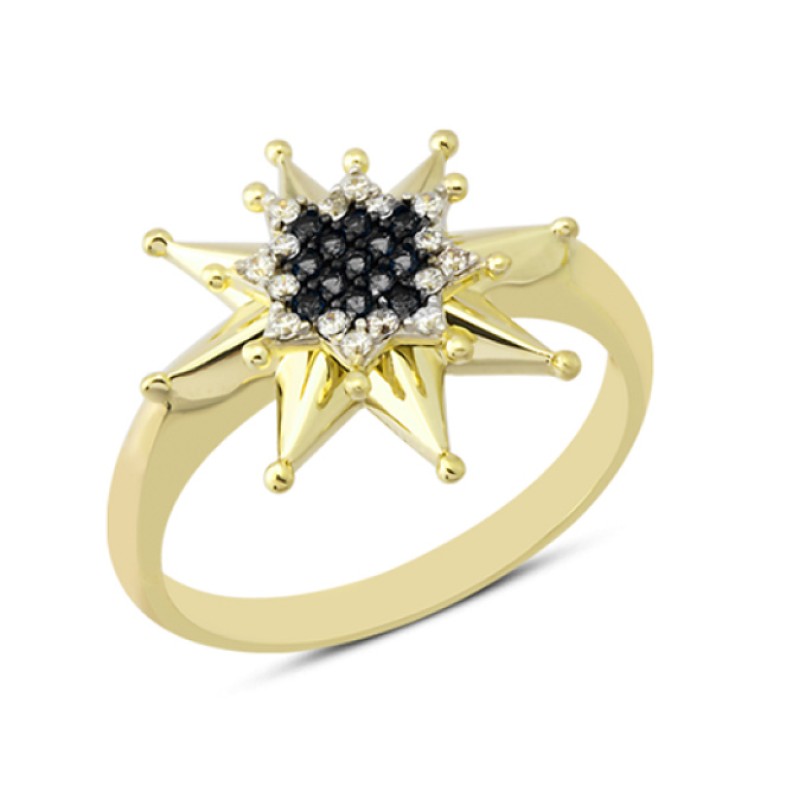 14 Ayar Altın Siyah Taşlı Yıldız Model Yüzük YZK066B